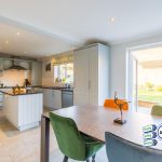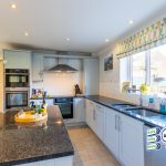 Superb modern fitted kitchen of fitted units and central island with stylish granite worksurfaces throughout. Integrated appliances include double sink with Quooker tap, two ovens, fridge/freezer microwave, electric hob with extractor hood above. Plumbed for dishwasher, uPVC double glazed window, PANTRY, central heating radiator.
