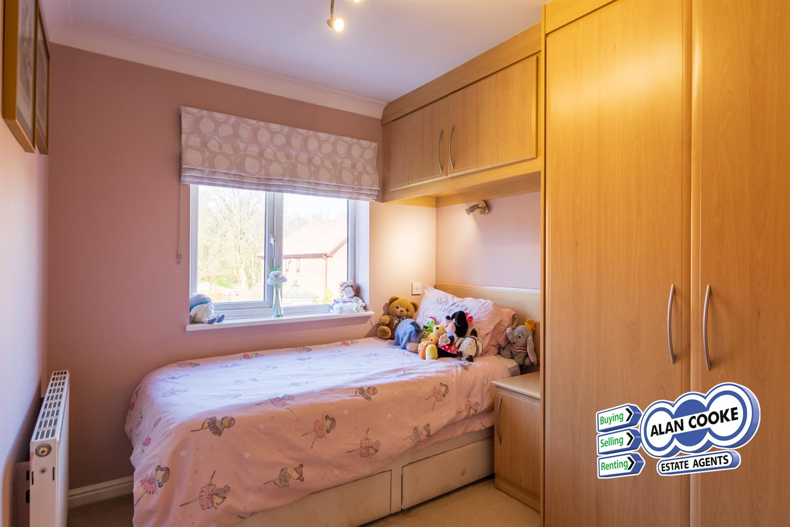 uPVC double glazed bay window to front overlooking the wooded copse, built in wardrobes, central heating radiator